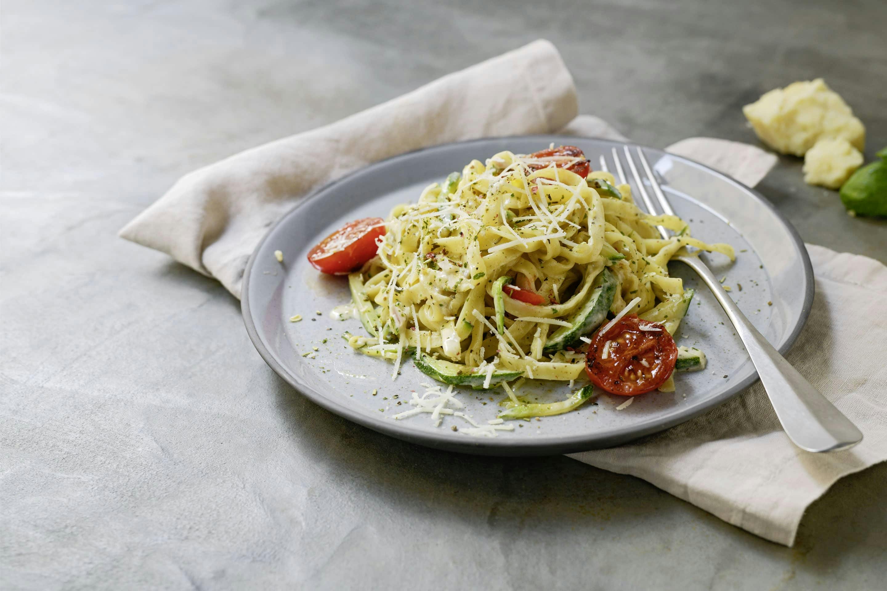 Cremige Zucchini-Tomaten Tagliatelle