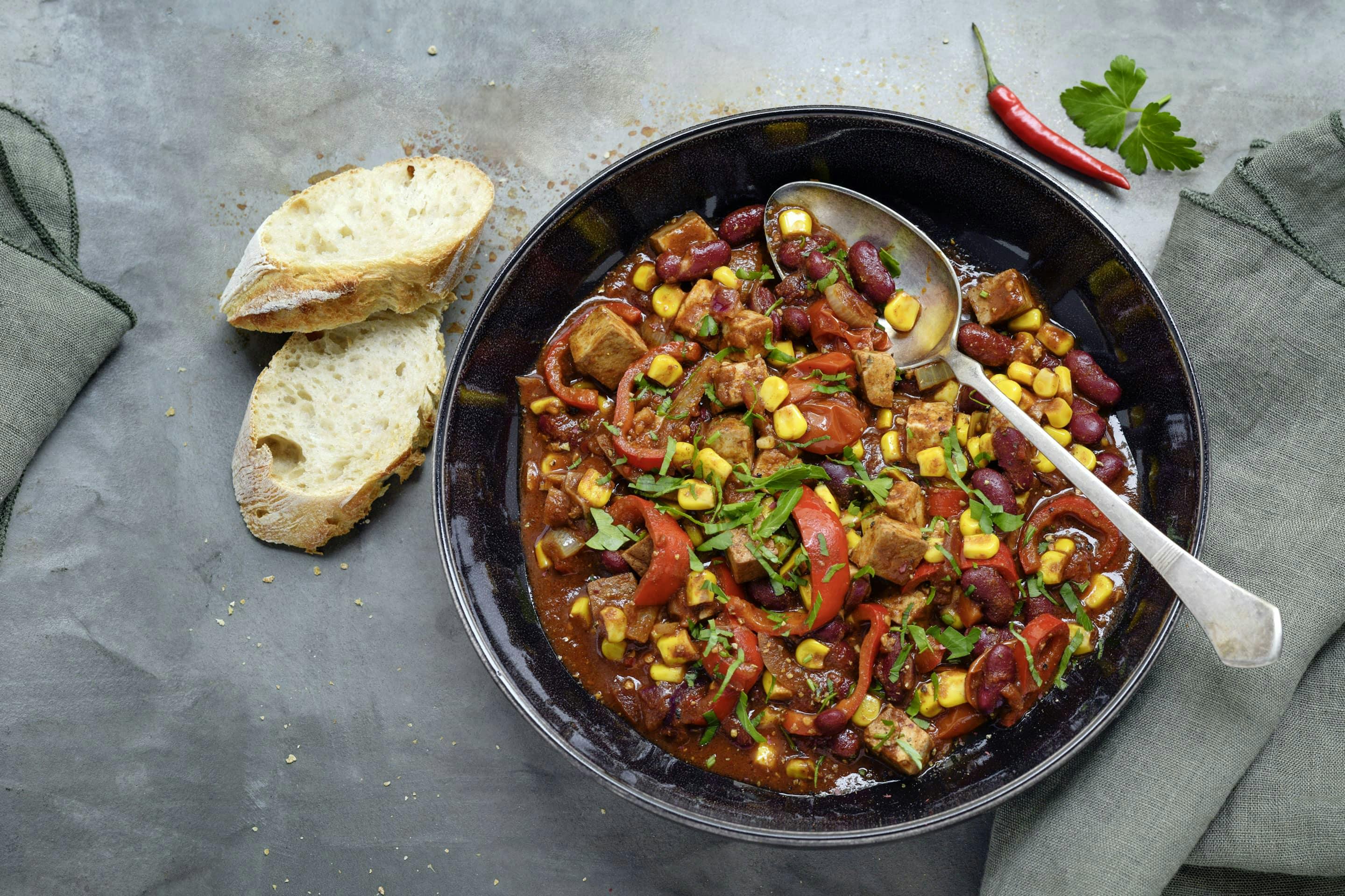 Das Chili mit frischem Weißbrot servieren und genießen.