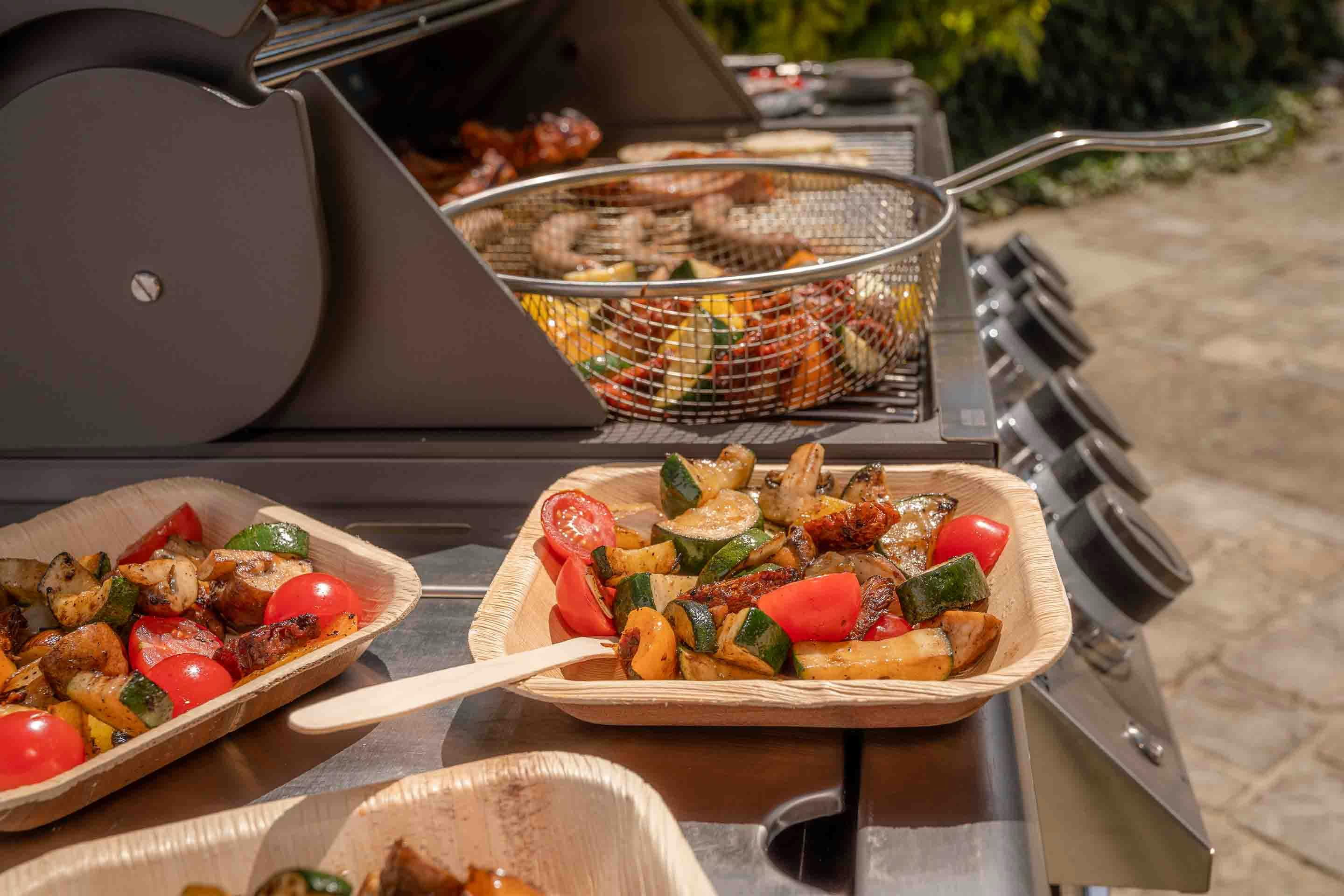 Dann einfach das Gemüse in den Frittierkorb leeren und auf den Grill stellen. Achte darauf, dass der Korb nicht zu voll ist, damit das Gemüse ausreichend Hitze abbekommt.