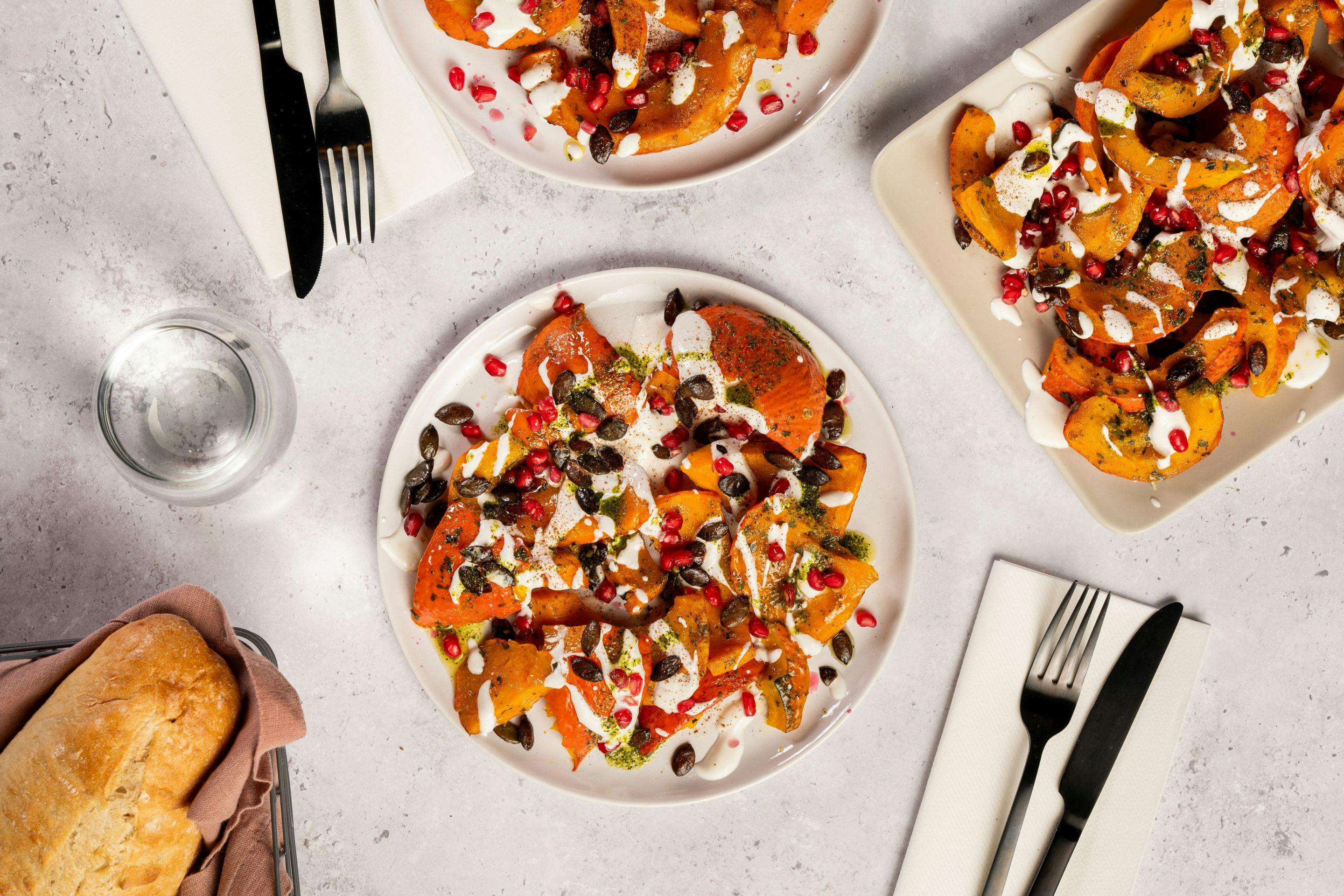 Den Kürbis dann aus dem Backrohr nehmen und kurz abkühlen lassen. Zum Schluss den Kürbis mit der Mascarponecreme, dem Pesto, den Granatapfelkernen sowie den gerösteten Kürbiskernen garnieren. Eine Prise Kotányi Zimt über das Topping gestreut, setzt dem Gericht die Krone auf.