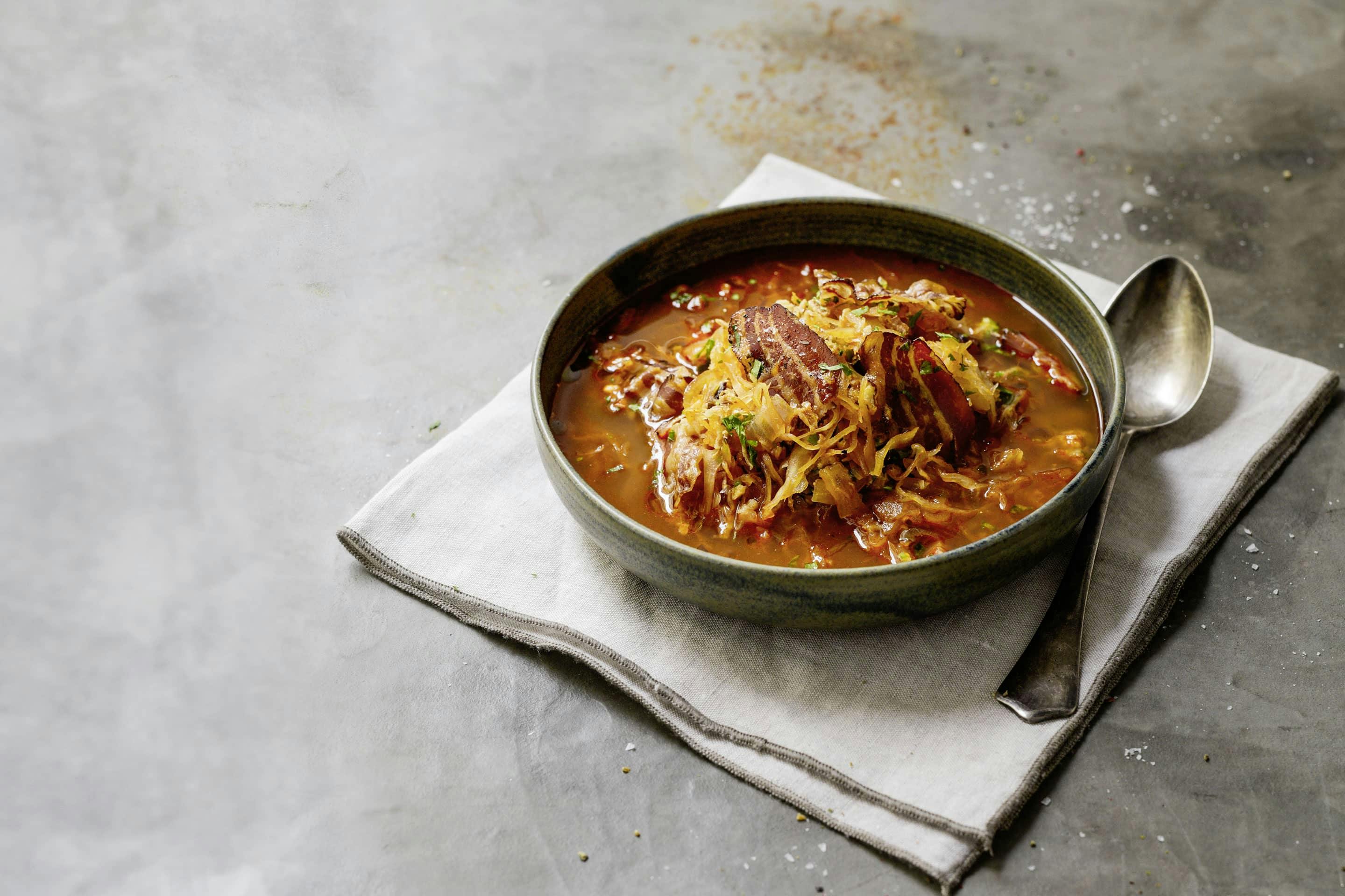 Ungarische Paprika-Sauerkrautsuppe mit Bacon